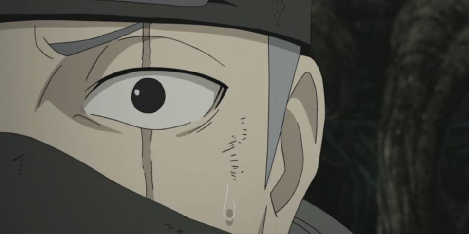 彼のチームメイトのオビト-ウチハは大きな岩の下に固定されていた。 自分の最後にいると信じて、彼はカカシに目の一つを提供しました。 チームメイトの凛はオビトの目を外し、カカシに最後の願いを捧げた。